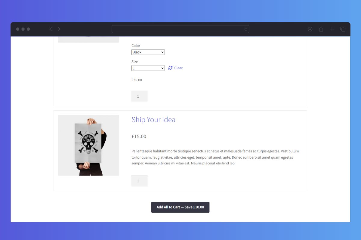 - Allow customers to add each individual product in the bundle to their cart, or add the whole bundle with just one click for a seamless buying experience.